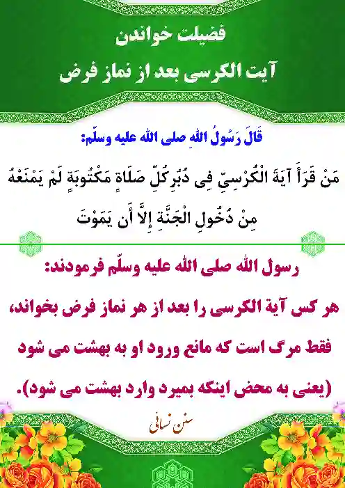 طرح فضیلت خواندن آیت الکرسی بعد هر نماز فرض